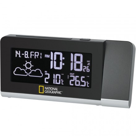 Основные характеристики- Тип устройства: метеостанция - Принцип работы: электронный - Измерение: температура - Внешний датчик: да - Тип внешнего датчика: беспроводной - Рабочая частота метеодатчика: 433.92 МГц - Радиус приема сигнала внешнего датчика: 30 м - Максимальное количество внешних датчиков: 3 - Способ установки: настольный - Назначение: домашний Управление- Управление: кнопочное, электронное - Дисплей: цифровой, символьный - Подсветка дисплея: да - Цвет подсветки дисплея: белый, красный, оранжевый, жёлтый, зелёный, голубой, тёмно-синий, фиолетовый - Часы: электронные - Встроенный календарь: да - Будильник: да - Количество будильников: 2 Датчики- Термодатчик: да - Передача значений температуры: да - Максимальная дальность передачи: 30 м - Максимальное количество одновременно используемых датчиков: 3 Измерения- Минимальная измеряемая температура: -20 °C - Максимальная измеряемая температура: 60 °C - Единицы измерения температуры: Цельсия (°С) Показания- Прогноз погоды: да - Способ вывода информации о прогнозе погоды: при помощи картинок Проектор- Проецируемая информация: температура, время - Функции проектора: постоянная проекция, кратковременная проекция - Цвет проекции: красный - Угол наклона проектора: 180 ° - Поворотный проектор: да Дополнительные характеристики- Автосохранение значения времени на случай сбоя питания: да - Радио: да Питание- Питание: от сети, от батареек - Тип элементов питания: АА - Количество элементов питания: 2 - Питание термодатчика: от батареек Корпус- Цвет: чёрный - Материал корпуса: пластик Комплектация- Главная консоль: да - Количество внешних датчиков: 1 - Инструкция: да